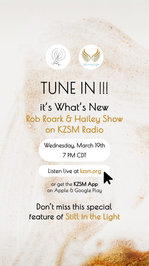 🚨 Still in the Light is being featured on It’s What’s New with Rob Roark & Hailey on KZSM Radio! 🎶✨